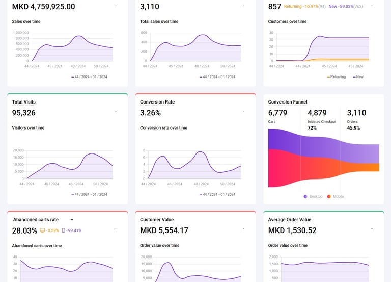 Нашиот софтвер овозможува складирање на податоци поврзани со сите производи, нарачки, вработени, курири и другo, што го олеснува генерирањето на потребните документи и аналитики.